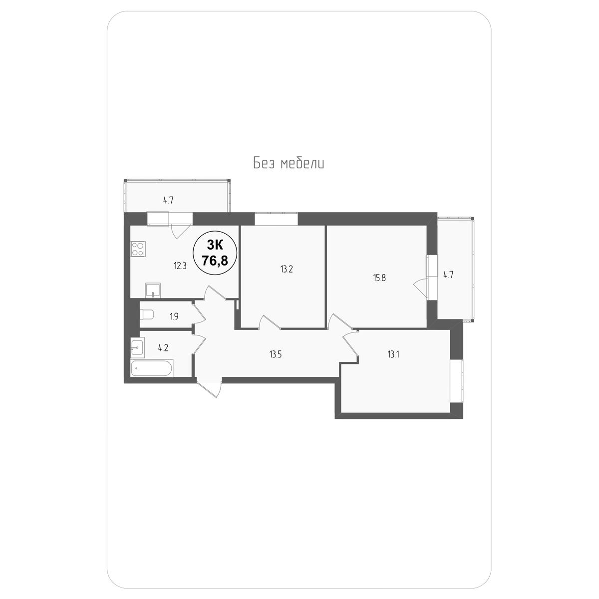 3 комнатная, 76.8 м2
